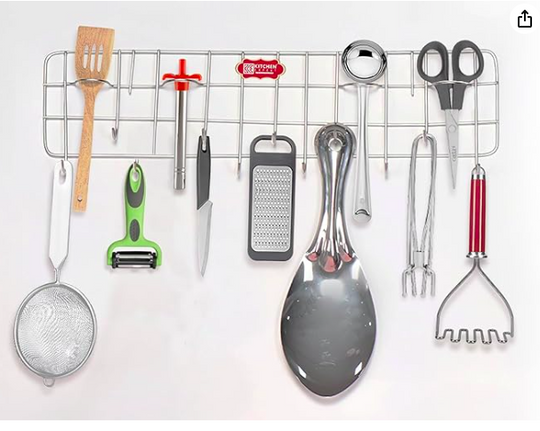 Kitchen Expert Steel Wall Mounted Cutlery Holder | 11 Hooks | Organiser for Kitchen Utensils | Spoon Holder and Ladle Stand | Multipurpose Hanger