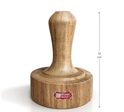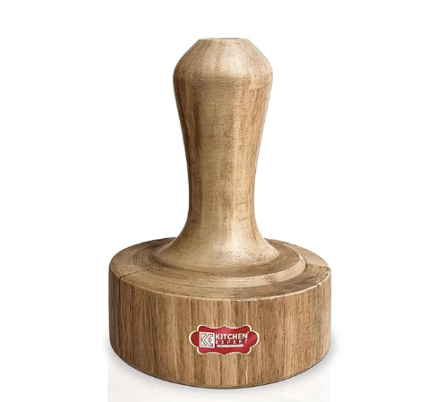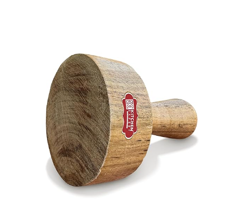 Kitchen Expert Wooden Hand Masher | Single Block/Jointless Wood | Paratha Seakni | Roti Presser | Potato/Pav Bhaji Masher | 1 Pc