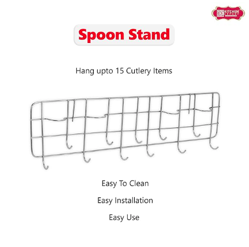 Kitchen Expert Steel Spoon | Steel Wall Mounted | Cutlery Holder Case | Ladle | Multipurpose Hanger | Cutlery | Ladle Hook Rail | Organizer For Kitchen