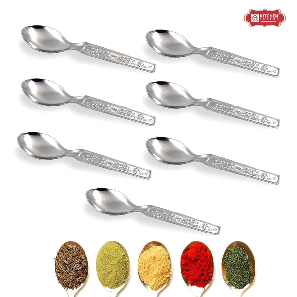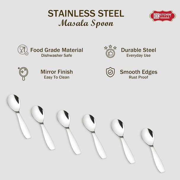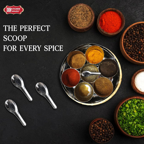 Kitchen Expert - Stainless Steel Small Spoon for Spice Jars | Mini Spoons for Tea/Sugar | Spices Spoon for Kitchen | for Small Containers | Spoon for Masala Dabba | 6 Pieces | 3.5-Inch | Silver Color