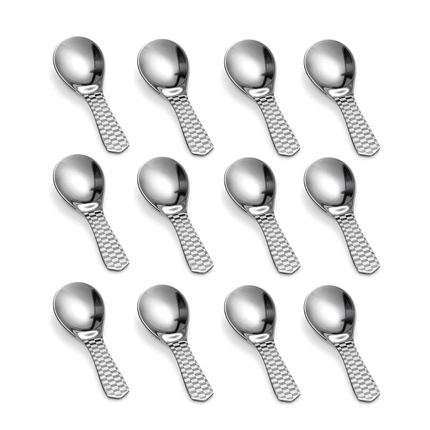 Kitchen Expert - Stainless Steel Masala Spoons | Set of 12 | Mini Spoons for Tea/Sugar | Spices Spoon for Kitchen | for Small Containers | Spoon for Masala Dabba | 3.5-Inch | Silver Color