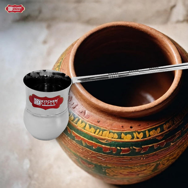Kitchen Expert - Stainless Steel Water Ladle | Water Dispenser Ladle | Canteen Server and Water Serving Spoon | Steel Lota | Steel Water Jug with Long Handle | 200 ML