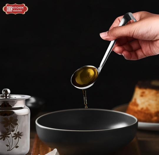 Kitchen Expert - Ghee Tipri | Stainless Steel | Small & Medium Spoon for Ghee/Oil | Ladle for Ghee Degchi/Pot/Jar/Container | 2 Pc