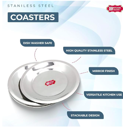 Kitchen Expert - Stainless Steel Glass Lid Set | Set of 12 | Small Lid Covers | Cup Mugs Lids | Steel Round Shape Coasters | Tea Cup Lids | Steel Ciba |