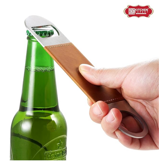 Kitchen Expert Leather Bottle Opener | Steel Bottle Opener | Set of 2 | Fancy Opener | Bar Tool | Cocktail Bottle Accessories