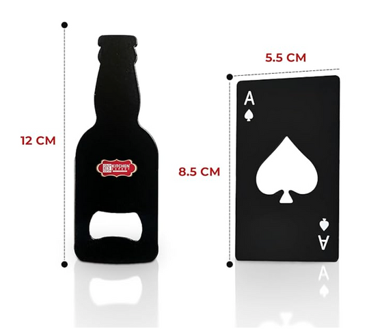 Kitchen Expert Stainless Steel Bottle Openers Combo | Set of 2 | Ace of Spade Card Shape | Beer Shape Opener | Bar Tools | Soda Opener |Unique Design | Barware Accessories | Black
