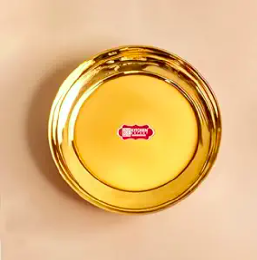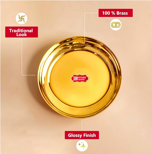 Kitchen Expert Small Brass Plate | 11cm | Pooja Thali | Ideal for Puja/Prasad/Dia | for Mandir Use | Handcrafted Dia Plate | Brass Pooja Plate