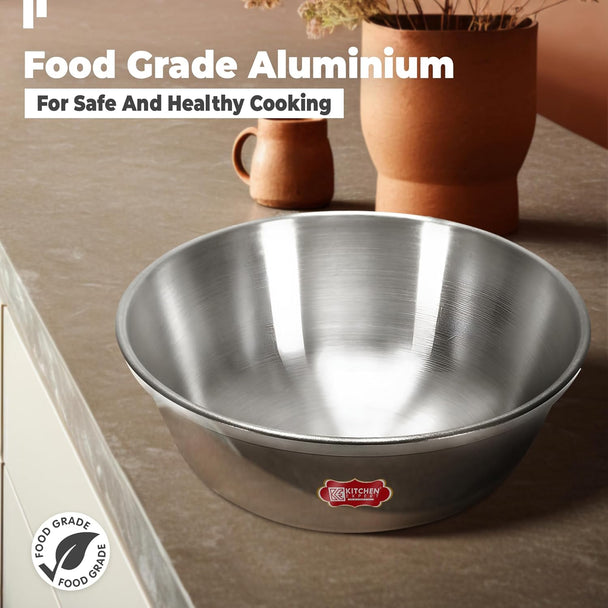 Kitchen Expert - Aluminium Tasla Combo | 1 & 1.75 Liters | Polished Outer Surface | Without Handle | Multipurpose | Aluminium Kadai for Deep Frying and Cooking