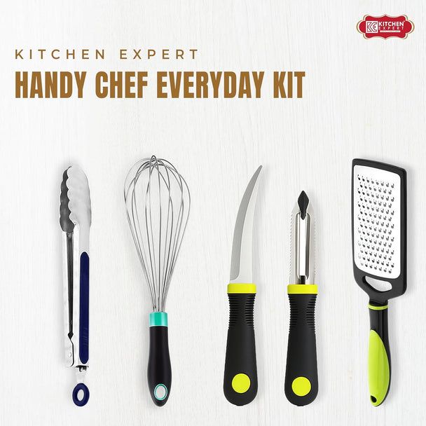 Kitchen Expert Stainless Steel Kitchen Tool Combo Set | Knife, Peeler, Whisker, Cheese Grater, Crinkle Cutter, Strainer & More | Multipurpose Cooking & Baking Tools Combo (5 in 1 Kitchen Tool Set)