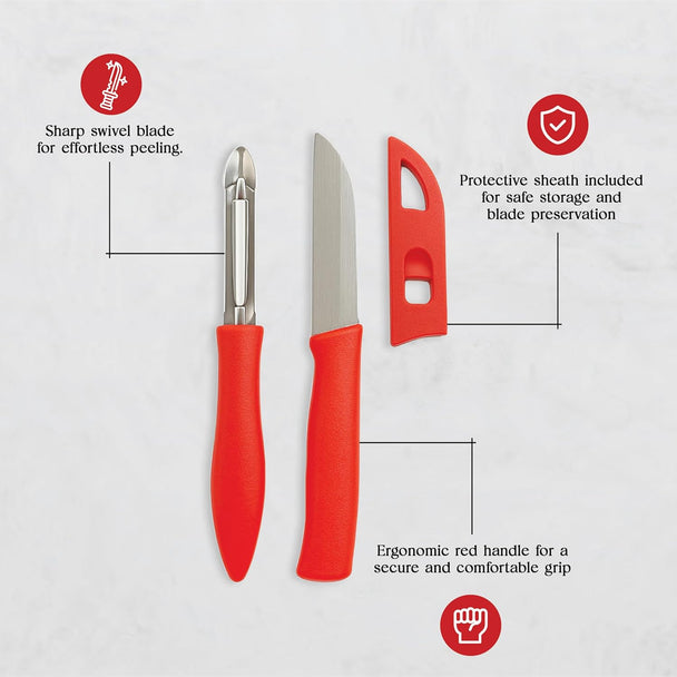 Kitchen Expert Stainless Steel Vegetable Knife & Peeler | Knife for Cutting/Chopping/Slicing | Peeler for Potato/Carrot/Cucumber | 2Pc Knife Combo