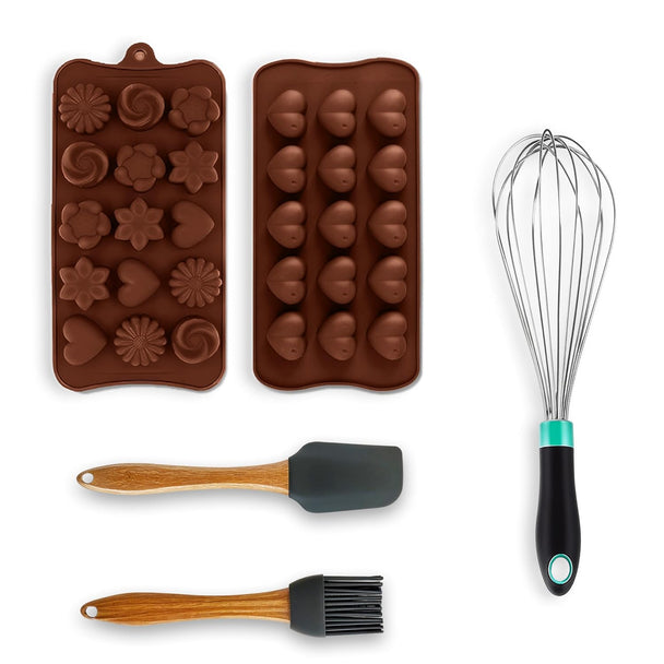 Kitchen Expert Silicone Spatula, Whisk & Chocolate Mould Set | 3-in-1 Baking & Cooking Combo | Non-Stick | Premium Silicone Moulds with Spatula & Whisk for Cake, Dessert & Chocolate Making
