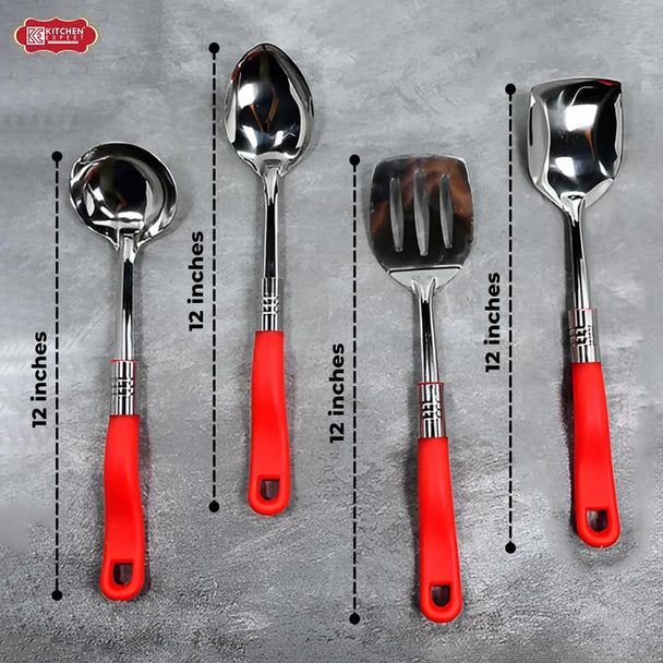 Kitchen Expert Stainless Steel Spatula | Set of 4 | Kitchen Tool for Cooking, Baking and Mixing | Heat Resistant and Non Stick Cookware | Include Slotted Turner, Skimmer, Spatula Spoon