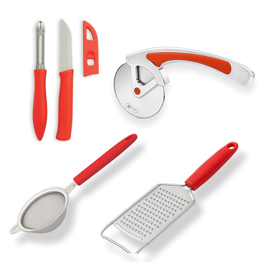 EASY TO CLEAN, STORE & MAINTAIN: The stainless steel kitchen utensil combo is dishwasher safe, easy to clean by hand, and compact for storage in kitchen drawers, utensil stands, or hanging loops. Complements other kitchen gadgets, spatula sets, silicone tools, and wooden utensils.