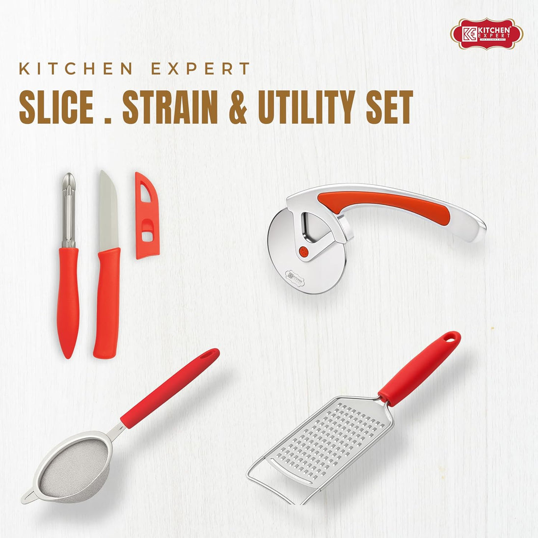 Multipurpose Use: Ideal for cutting vegetables, peeling fruits, grating cheese, whisking batters, straining liquids, and prepping ingredients.