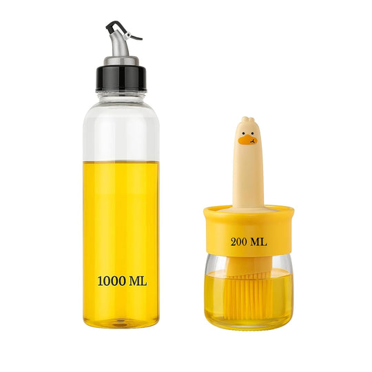 Kitchen Expert Oil Dispenser Combo | 1 Litre Plastic Oil Bottle for Storage | 200ml Silicone Oil Dispenser with Brush for Baking, BBQ, Grilling | Leakproof Bottle | Versatile Oil Container for Kitchen