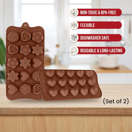 Kitchen Expert Silicone Spatula, Whisk & Chocolate Mould Set | 3-in-1 Baking & Cooking Combo | Non-Stick | Premium Silicone Moulds with Spatula & Whisk for Cake, Dessert & Chocolate Making