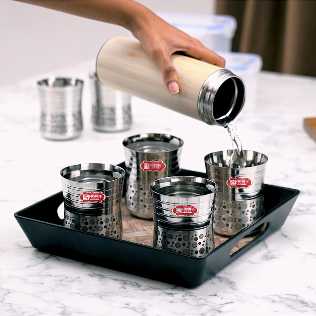 MULTIPURPOSE USE – Perfect for water, tea, coffee, cold drinks, and more. Great as a steel coffee glass, glass tea set, or everyday drink glass set.