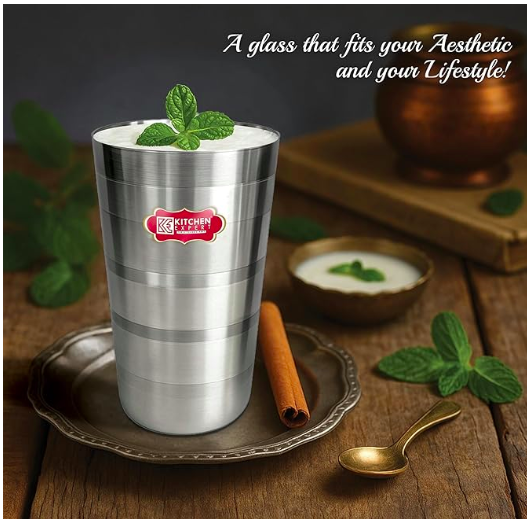 Multipurpose Use: Ideal as a steel lassi glass, water glass, or multipurpose drinking glass for various beverages.