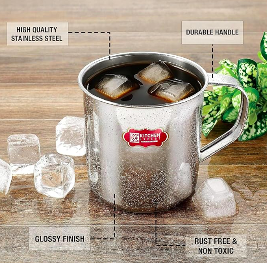 Kitchen Expert Stainless Steel Mug 900 ML | Multipurpose Usage Cup/Tea/Coffee | Steel Mug | Tea & Milk Mug for Travel, Camping, Hiking, Home, Office, Restaurant | Strong and Sturdy Handle | 1Pc