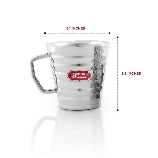 Kitchen Expert Stainless Steel Mug | Set of 2 | Double Insulated Wall Tea, Coffee & Milk Cups | Microwave & Dishwasher Safe | 200ML | Ideal for Daily Use & Gifting