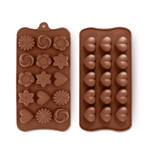 Kitchen Expert Chocolate Silicone Mould | Pack of 2 | Heart and Flower Shape Mold