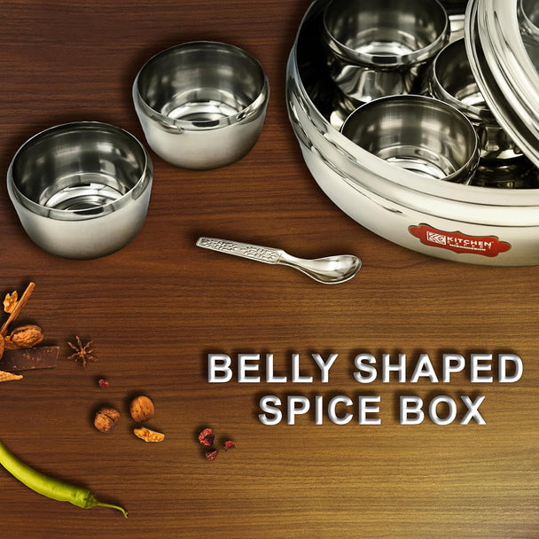 Kitchen Expert Stainless Steel Airtight Masala Dabba | 1.5 Ltr | with 7 Containers & Spoon