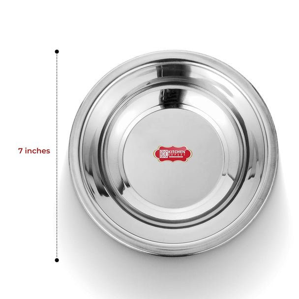 Kitchen Expert Stainless Steel Plates | Set of 6 |Heavy Guage with Mirror Finish