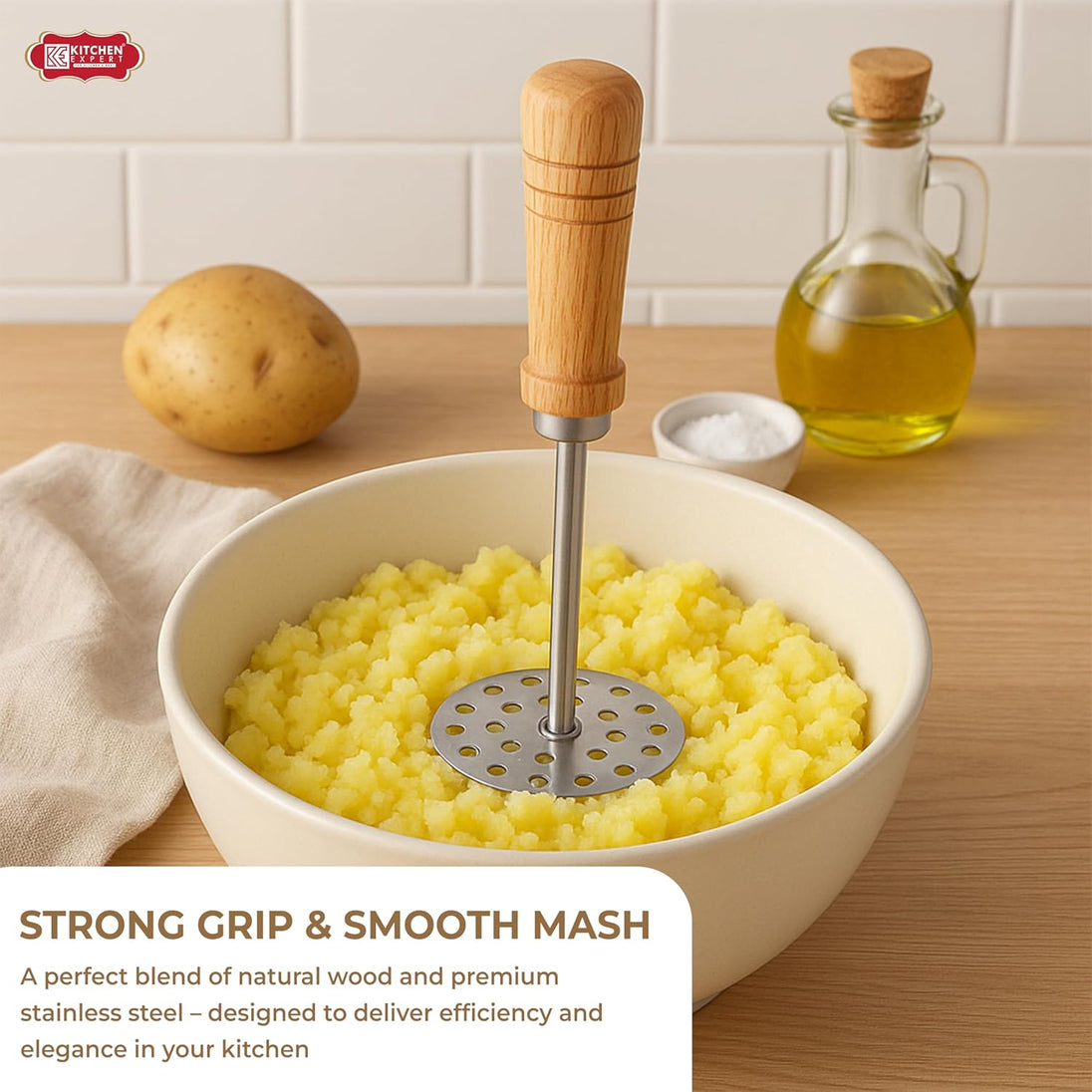 VERSATILE USE: Ideal for mashing dal, vegetables, and more, making it a perfect all-around kitchen tool.