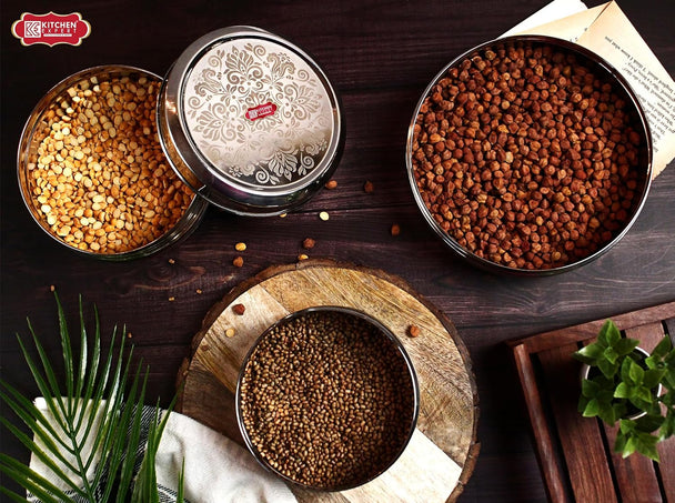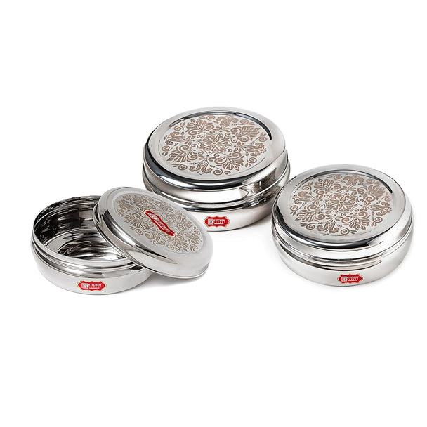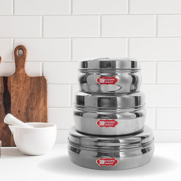 Kitchen Expert® Steel Containers For Kitchen Storage Set Of 3 (300 ML, 400 ML, 500 ML)