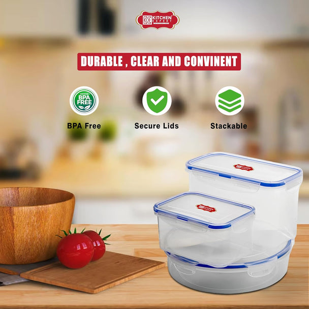 Kitchen Expert Airtight Plastic Containers for Kitchen | Set Of 3