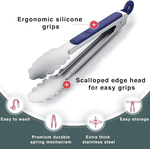 About this item MULTI-PURPOSE SILICONE TONGS – Ideal for air fryer cooking, BBQ, grilling, salad serving, snacks, chapatis, roti, and frying. PREMIUM FOOD-GRADE MATERIAL – Made with high-quality silicone tips and durable stainless steel grip for...Regular price Rs. 439.00Regular price Rs. 439.00 -
