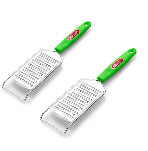 Kitchen Expert Stainless Steel Cheese Grater | Set of 2 | Grating for Cheese,Ginger,Carrot,Vegetables,Fruits | Protective Edges & Secure Grip | Razor Sharp Blade | Multipurpose