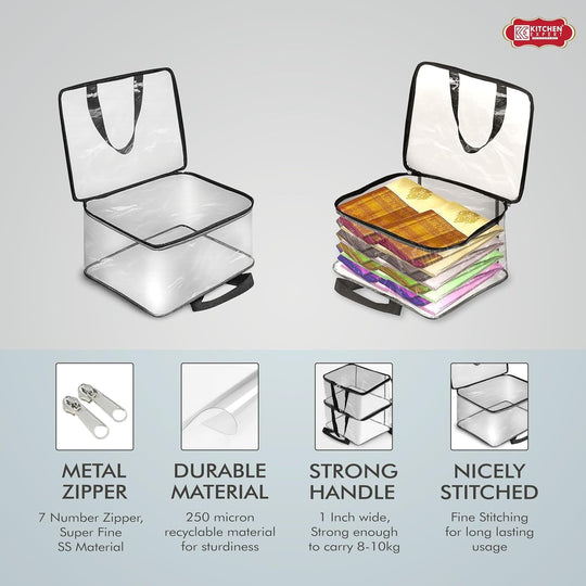 CLEAR TRANSPARENT DESIGN FOR QUICK VISIBILITY:-The fully transparent body helps you see clothes and accessories instantly, which saves time when you are searching for sarees, bedsheets, shirts, blankets, or winter wear. Ideal for keeping cupboards neat...Regular price From Rs. 249.00Regular price From Rs. 249.00 -