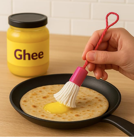 Kitchen Expert Oil Brush for Kitchen | Ghee/Oil Spreader | Butter Brush | Cotton Thread with Plastic Handle | Traditional Spreader for Roti/Paratha | Pastry Brushes for Kitchen | Set of 4