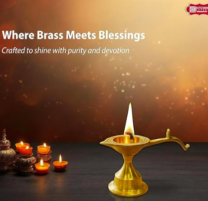 Brass Aarti Diya/Deepak, 7 Batti & 1 Big Batti Aarti, Gold