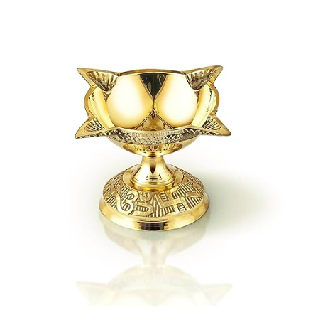 Add more elegance to your pooja Mandir with this brass diya which bears an ample space to hold the oil and the camphor. It is used in Hindu temples for lighting and prayer purposes.