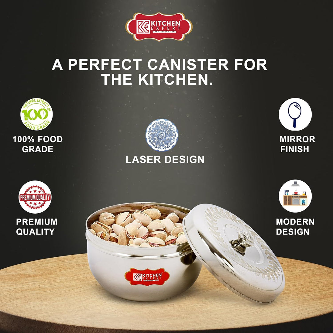 Versatile Storage Solution - Ideal for storing a variety of kitchen essentials like grains, pulses, spices, dry fruits, snacks, etc ample. The set includes 3 pcs of steel storage containers, providing storage options.