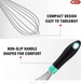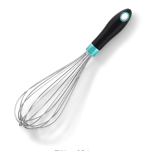 Sturdy Construction: Features tightly coiled wires for efficient mixing and a long handle for better control.